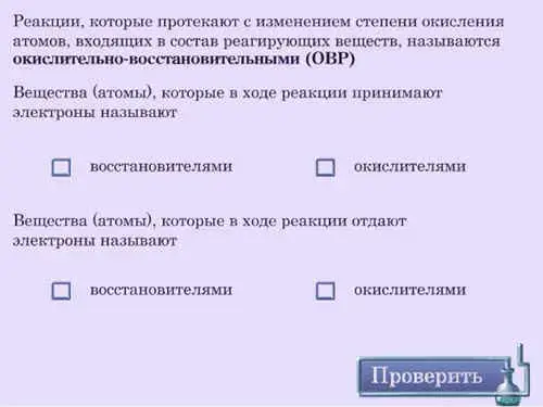 Тема "ОВР" проходится на 2-х уроках, а данном уроке пока не проходим метод электронного баланса, а проводится только определение ОВР и вспоминаем умение находить С.О. и повторяем понятия "Окисление", "Восстановление", пройденные в начале учебного года.