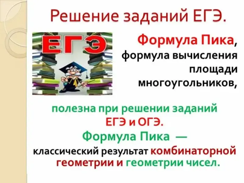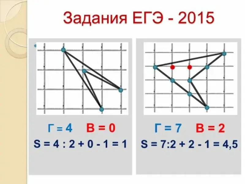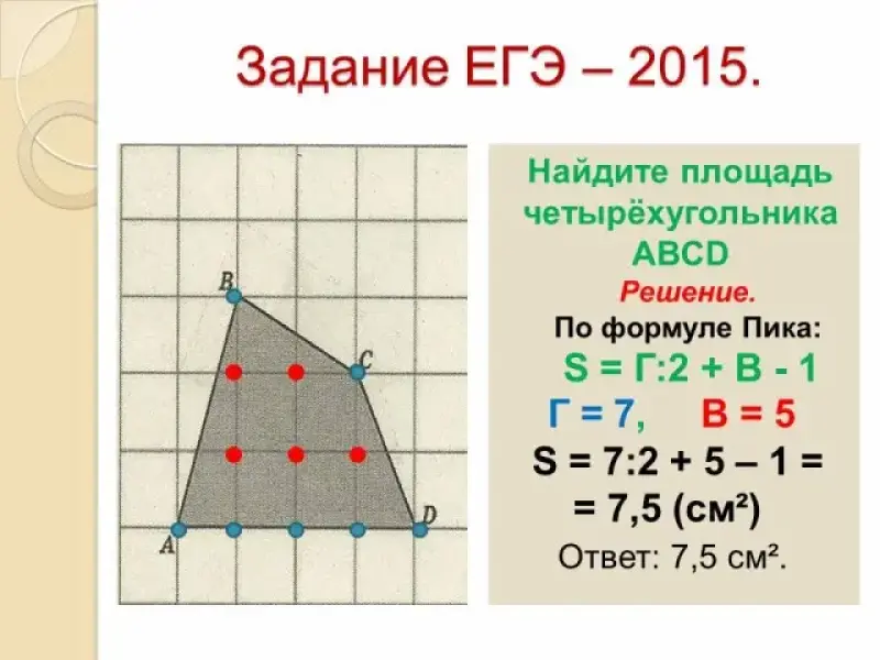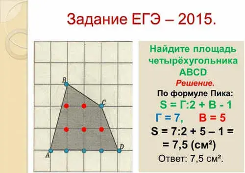 Применяя формулу Пика легко выполнять задание ЕГЭ и ОГЭ.