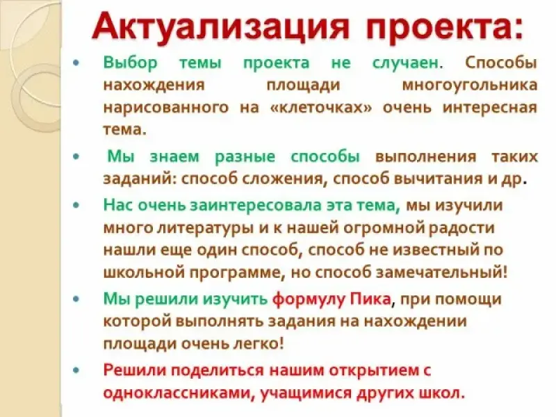 Выбор темы проекта не случаен. Способы нахождения площади многоугольника нарисованного на "клеточках" очень интересная тема.