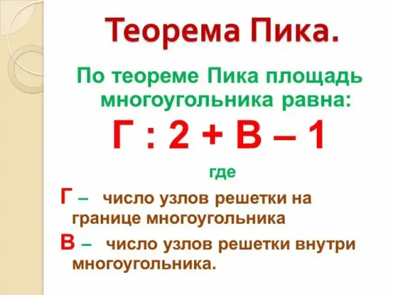 Формула Пика - классический результат комбинаторной геометрии и геометрии чисел.