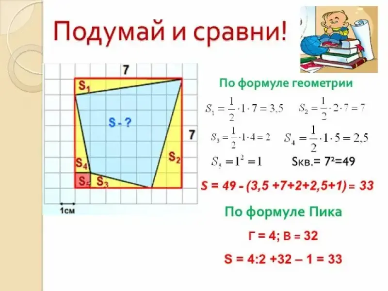 Предлагаем каждому из вас вычислить площадь многоугольника, используя формулу Пика: