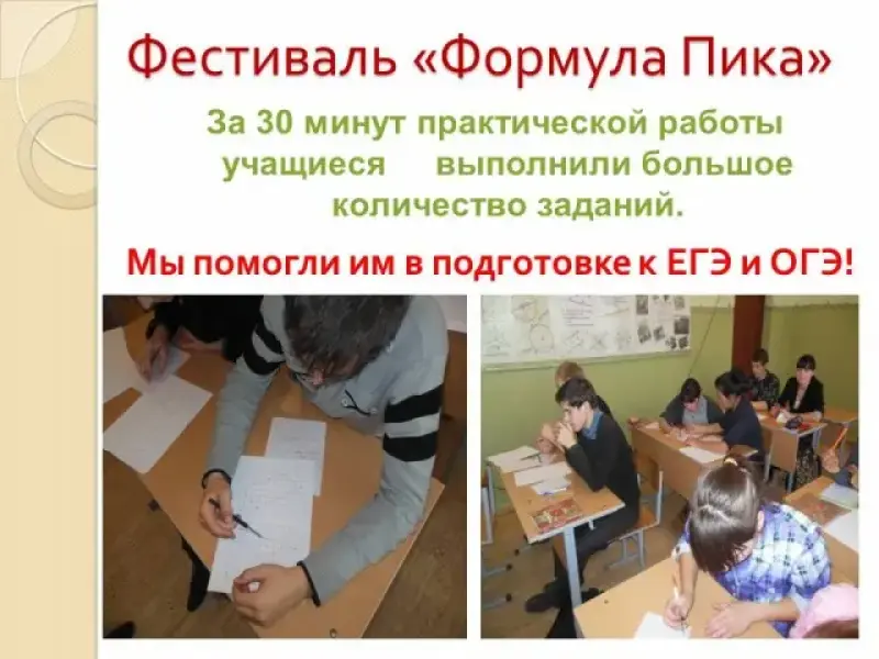 Мы решили научить пользоваться формулой Пика учащихся 9 - 11 классов нашей школы. Провели фестиваль "Формула Пика".