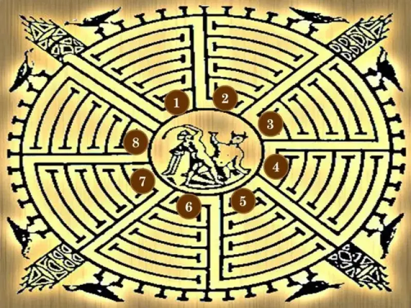 Занятие будет проходит в форме игры "Лабиринт Минотавра" Давным - давно греческий город Афины платил дань ужасному чудовищу по имени Минотавр, великану с головой быка. Каждый год отдавали горожане самых красивых юношей и девушек Минотавру на съедение. Домом Минотавру служила хитрая ловушка - Лабиринт. Кто входит в лабиринт- уже не мог найти выход наружу. Когда пришла пора Афинам платить дань, жребий пал на смелого богатыря Тезея. Решил Тезей сразиться с Минотавром и убить его. Но что делать герою, даже если он победит чудовище? Ведь все равно из запутанного Лабиринта никто еще не смог найти выход... Помогла Тезею мудрая принцесса Ариадна - дала клубок шерсти и надоумила Тезея привязать конец нити ко входу. Убив Минотавра, Тесей по нитке нашел обратный путь из лабиринта и вывел оттуда всех обреченных. С тех пор люди и называют верный способ выхода из затруднений "путеводной нитью Ариадны". |