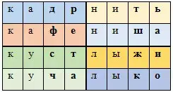 Задание1. Найдите общие начала для слов каждого цвета. Из найденных буквосочетаний составьте ключевое слово из восьми букв.
