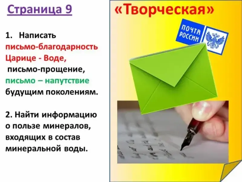 Для следующего занятия найти информацию о тех полезных веществах (минералах), которые содержатся в минеральной воде, чем они полезны для организма.