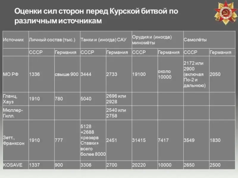 Ставка Верховного Главнокомандования приняла решение не переходить первыми в наступлении, а занять жесткую оборону. Под Курском строилась глубоко эшелонированная оборона, имевшая несколько линий укреплений. К началу битвы советские войска значительно превосходили противника как в людях, так и в технике.