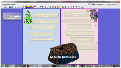 Вытаскивая из корзины признаки голосеменных растений, поместить их под ёлочкой, а признаки покрытосеменных растений разместить под цветочком. Если признак размещён правильно слышно звуковое сопровождение.(флипчарт №3)