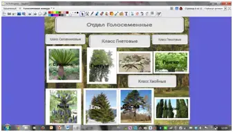 Фотографии с представителями голосеменных двигаются по заданным линиям и картинки встают на свои места.