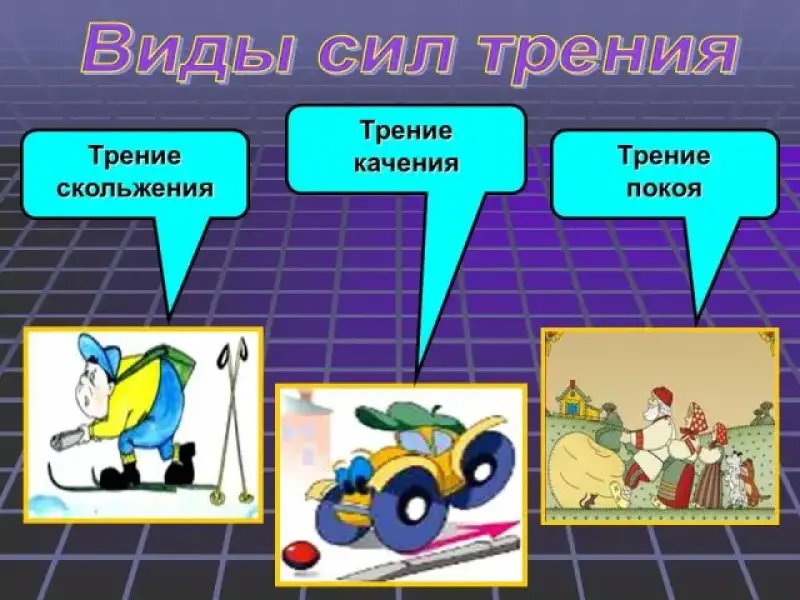 3. Виды сил трения: трение скольжения, трение качения и трение покоя. <слайд № 4>