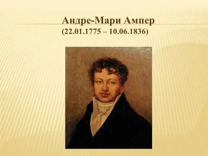 Слайд 2. Андре-Мари Ампер - французский физик, математик и химик. Он родился в Лионе в семье коммерсанта. В прекрасной библиотеке его отца были произведения известных философов, ученых и писателей. Юный Андре мог целыми днями просиживать там с книгой, благодаря чему он, никогда не посещавший школу, сумел приобрести обширные и глубокие знания.