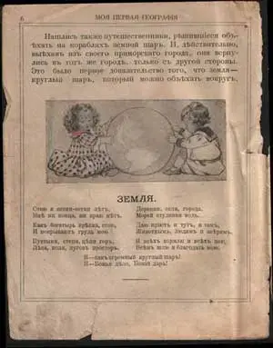 Так вот, в этой книге написано, что "очень давно люди думали, что земля плоска, как стол, и что, если идти все прямо и прямо, то можно дойти до конца земли. Но потом явились ученые, которые доказали, что земля, это - огромный шар, не имеющий конца-края".