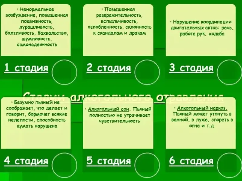 1 стадия отравления (дурашливость) - слабое опьянение появляется после приема малой дозы алкоголя, характеризуется ненормальным возбуждением, в связи с которым появляются повышенная подвижность, дурашливость, болтливость, бахвальство, шумливость, самонадеянность.