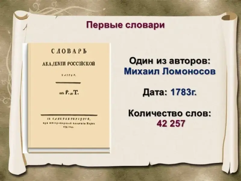 Ученик: Это большое богатство, но отчасти мы его растеряли. Слишком поздно стали записывать слова, составлять словари. В первом печатном словаре 1596 года было всего 1061 слово.