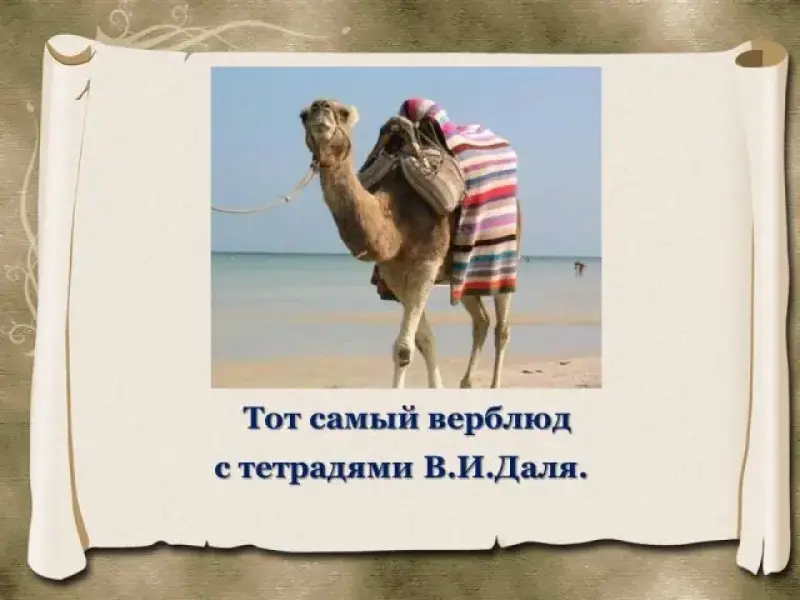 Учитель: Скоро слов стало так много, что для их перевозки понадобился верблюд. Однажды во время турецкого налета верблюда угнали. Даль был в отчаянии.