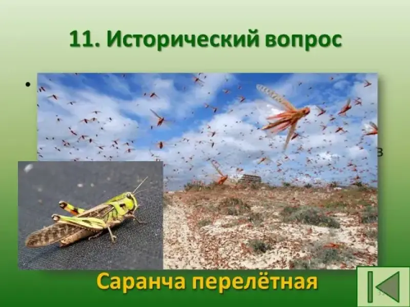 Ответ: Саранча. - Исторический вопрос. Это бескрылое кровососущее насекомое знали еще до н.э. в Греции и Риме. В другие страны Европы оно попало лишь в 10 веке и сразу получило
