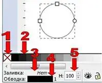 3. На панели свойств (рис. 3) задайте параметры объекта: обводка - черная (4), цвет заливки - нет (3), непрозрачность - 100 (5).