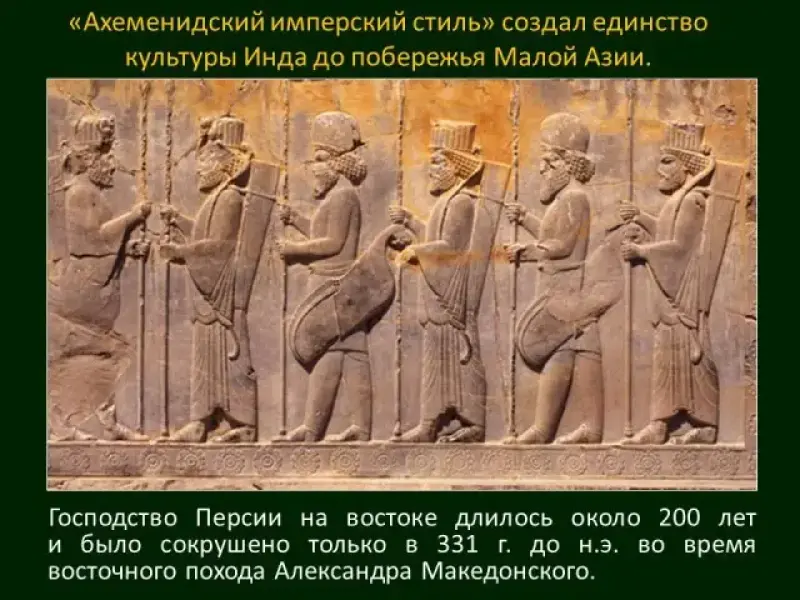 "Ахеменидский имперский стиль" создал единство культуры Инда до побережья Малой Азии и подготовил условия для нового этапа в искусстве - эллинизма. Окончательная гибель месопотамской цивилизации наступила только после завоевательных походов Александра Македонского (Слайд 75).