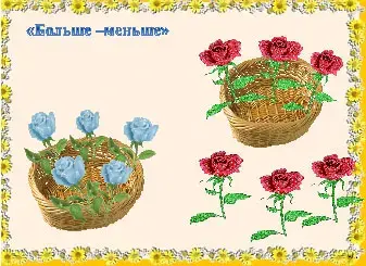 Детям предлагается посчитать, сколько синих и красных цветов в корзине. |