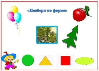 Педагог предлагает закрепить геометрические фигуры на интерактивной доске. Электронное пособие "Подбери по форме"