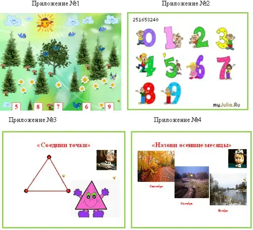 | Игровая | "Найди цифру", "Закрась кружочек", "Поставь знак", "Дорисуй картину", электронные игры: "Посчитай", "Отгадай загадку" |