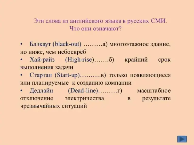 Ведущий 2: Первый гейм "Дальше, дальше" для капитанов. Капитанам нужно будет ответить на вопросы ведущего за полторы минуты. Если капитан не знает ответ, нужно сказать "further" или "go on" (приложение 1)