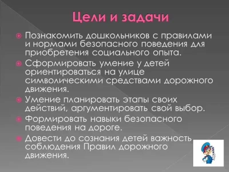 - Формировать готовность родителей к сотрудничеству с педагогами по развитию у детей навыков безопасного поведения на улице.