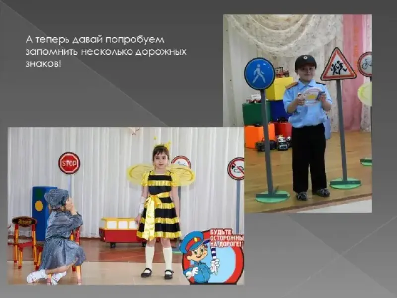 - Развивать слуховое восприятие на основе различения звуков на дороге.