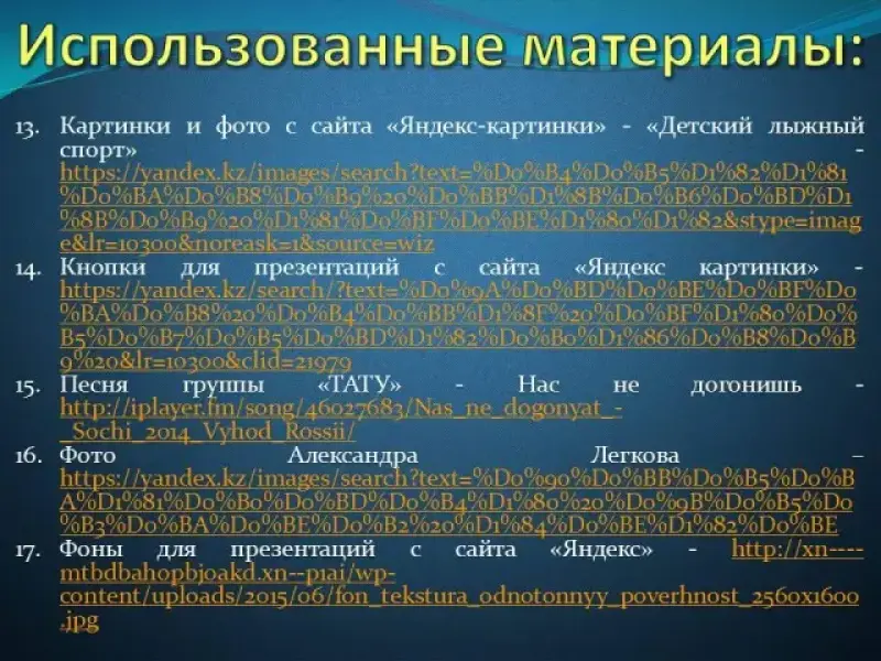 На последнем слайде вставлен видеоролик "Финиш Олимпийского чемпиона - Александра Легкова".