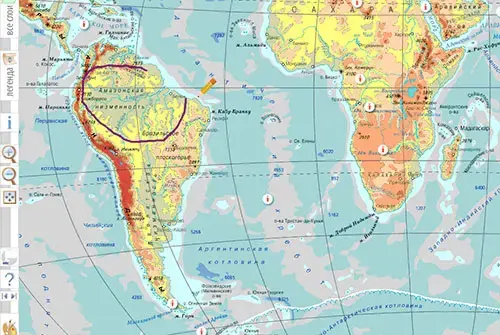 Например, задание: обозначьте на карте Южной Америки границы водного бассейна реки Амазонка.