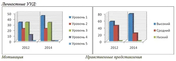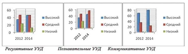 Динамика развития УУД хорошо прослеживается на диаграммах: