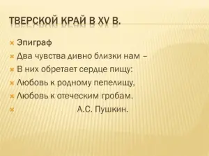 На протяжении веков Тверь и Москва боролись за право первенства на Руси, за право стать центром собирания русских земель в единое государство. Вначале этой борьбы перевес был на стороне Твери. Однако, мы знаем, что столицей единого государства стала Москва, а тверские земли вошли в состав Московского государства. Почему это произошло, и каков был для Тверского края последний век самостоятельности, мы узнаем на этом уроке.