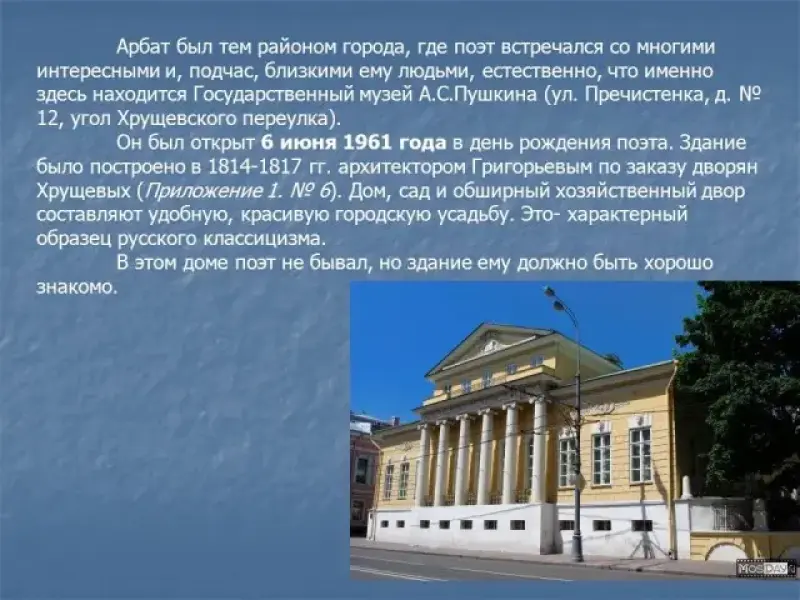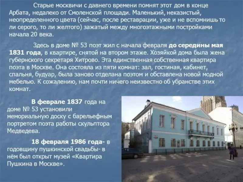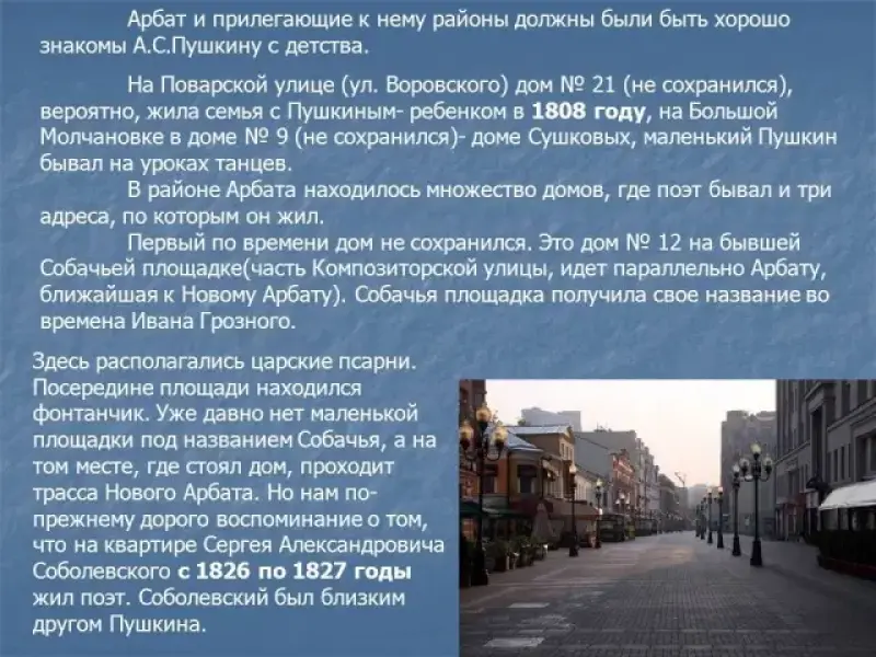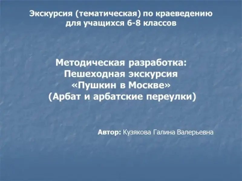 Экскурсия по краеведению для учащихся 6–8-х классов. Пешеходная экскурсия «Пушкин в Москве» (Арбат и арбатские переулки)