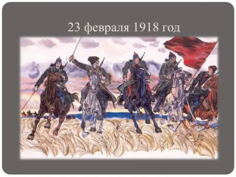 Это было в феврале восемнадцатого года. Республике Советов шел всего четвертый месяц. На Петроград надвигались германские войска. Утром 23 февраля 1918 года под древним городом Псковом закипел первый бой. И в честь первых побед Красной Армии над противниками революции в феврале 1918 г. и был установлен этот праздник. На протяжении нескольких десятилетий его отмечали как день рождения Красной Армии.