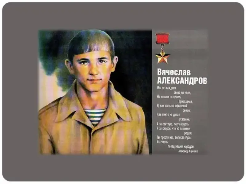 Более 25 лет прошло со дня вывода из Афганистана советских военных частей. Многие солдаты пали смертью героя, выполняя интернациональный долг в Демократической Республике Афганистан. 16 человек стали Героями Советского Союза, 2 - Героями России, 11 из них - посмертно. Среди них и наш земляк Герой Советского Союза Александров Вячеслав Александрович.