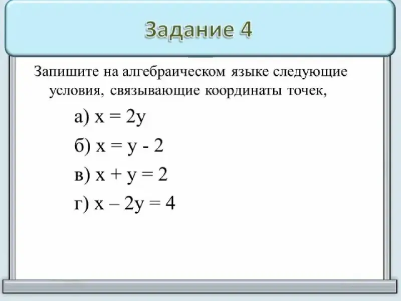 4. Запишите на алгебраическом языке следующие условия, связывающие координаты точек, которые они задают: