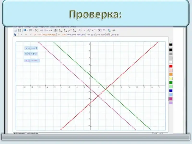 а) у = 3 - х; б) у = 5 + х; в) у = х - 1. Опишите каждую. Укажите, какой именно соответствует график. |