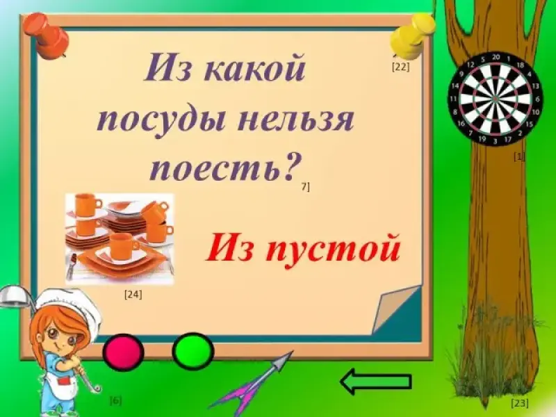 Если учащиеся ответили верно на вопрос, то учитель нажимает на зелёную кнопку на слайде. При неверном ответе - на красную.