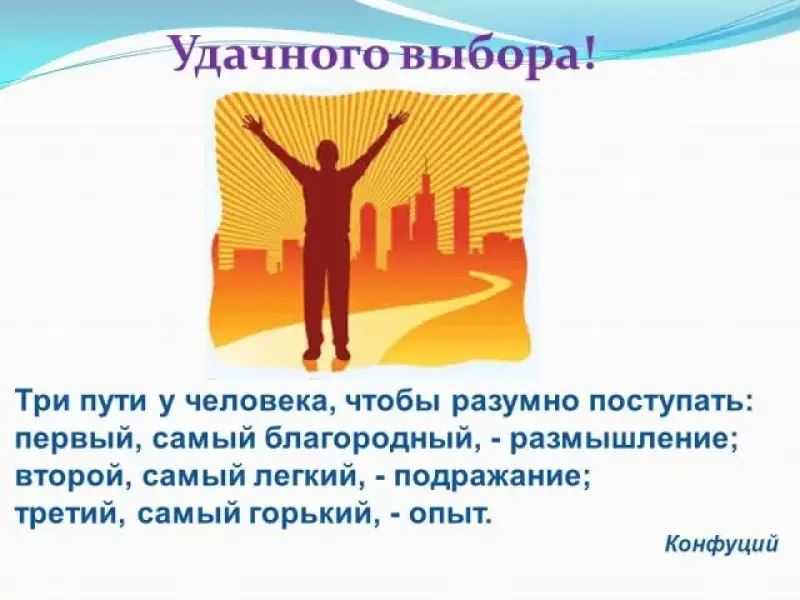 Иногда говорят: жизненный опыт приобретается только собственным путем, через собственные ошибки, так ли это? Ученые-социологи подсчитали, что примерно 40% молодежи из-за незнания выбора правил профессии, отсутствие опыта в профессиональной деятельности, избирают профессию, не соответствующую их интересам, склонностям, способностям, внутренним убеждениям. Это влечет за собой разочарование, даже психические расстройства... Велик и экономический урон государству. Ежегодно оно теряет миллиарды рублей, так как более трети выпускников школ поступают учиться по специальностям, не соответствующим их индивидуальным запросам и потребностям общества.