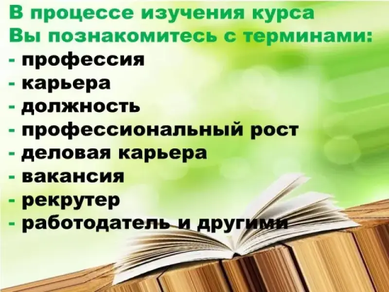 Поэтому, в курсе "Профессия и карьера" мы узнаем, какие существуют типы и виды карьеры, какие качества присущи профессионалу нынешнего века, как осуществить поиск работы и трудоустройства, как планировать деловую карьеру, а также научимся, как правильно преподнести себя на рынке труда.
