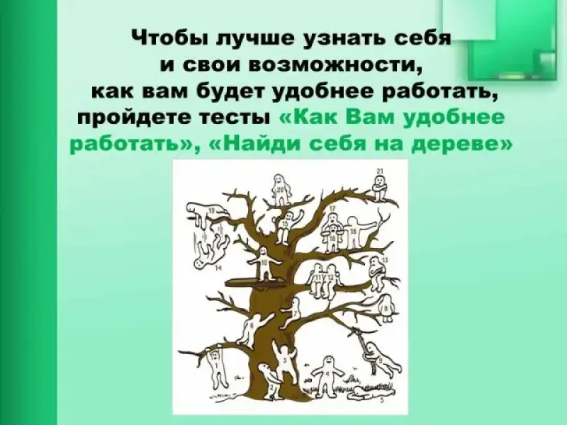 А для того, чтобы лучше себя узнать, давайте проведем тест "Найди себя на дереве". Приложение 1, Приложение 2.