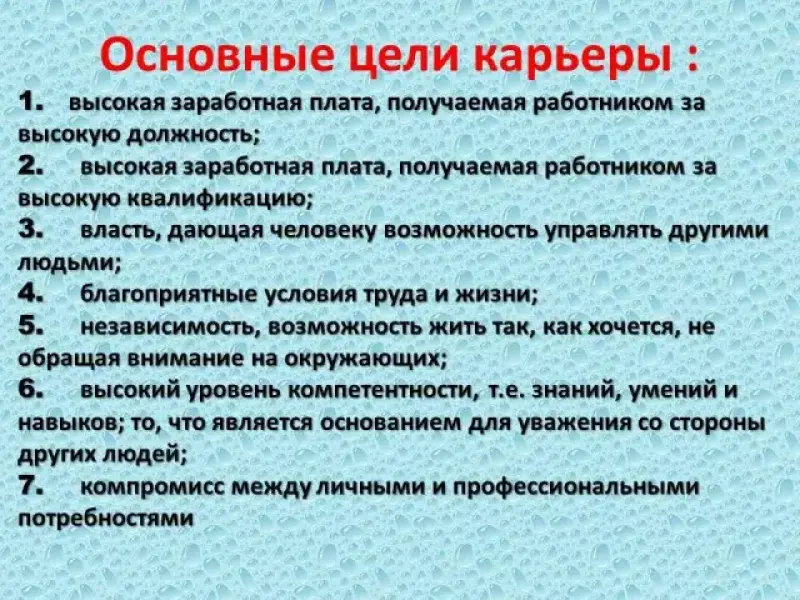 2. Назовите цели карьеры.