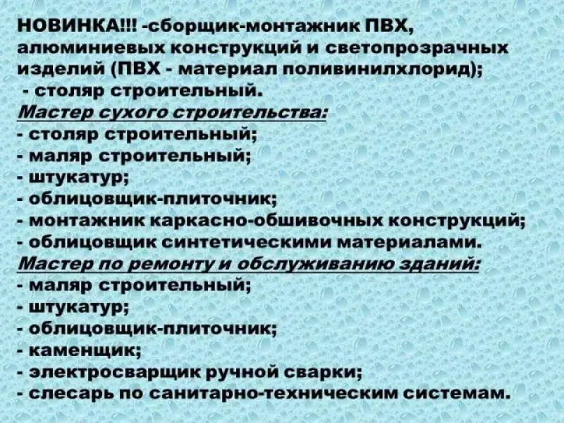 - воспитывать интерес к своему профессиональному будущему, способствовать правильному выбору; создать условия для получения информации о преобретении интересуемых профессий в ПМР;