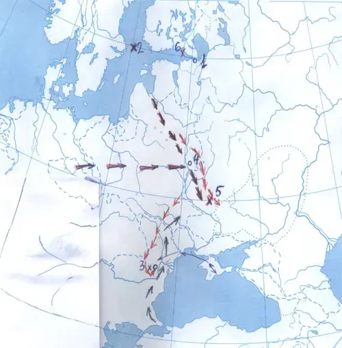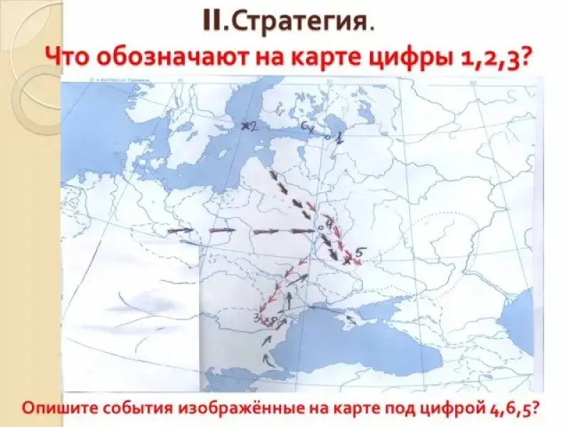 Опишите события изображённые на карте под цифрой 4, 5, 6?