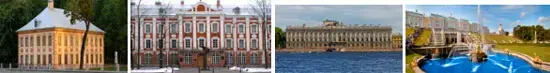1.Летний дворец. 2. Здание Двенадцати коллегий 3. Мраморный дворец. 4. Петергоф.