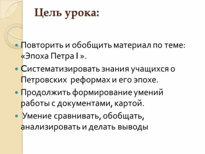 - Cсистематизировать знания учащихся о Петровских реформах и его эпохе.