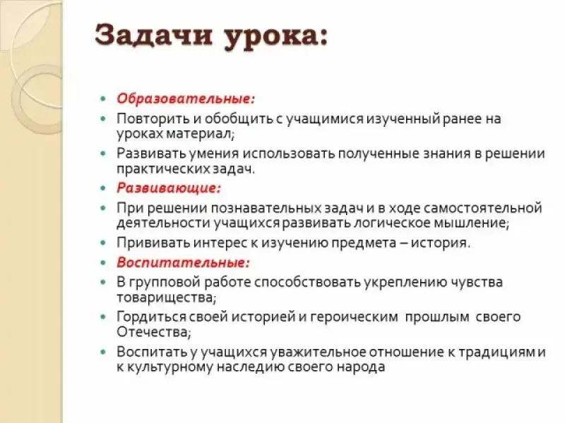 - Повторить и обобщить с учащимися изученный ранее на уроках материал;