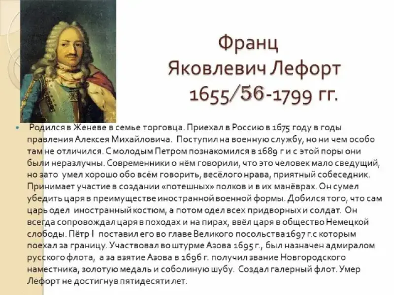 Франц Яковлевич Лефорт, 1655/56-1799 гг. (Слайд 12)