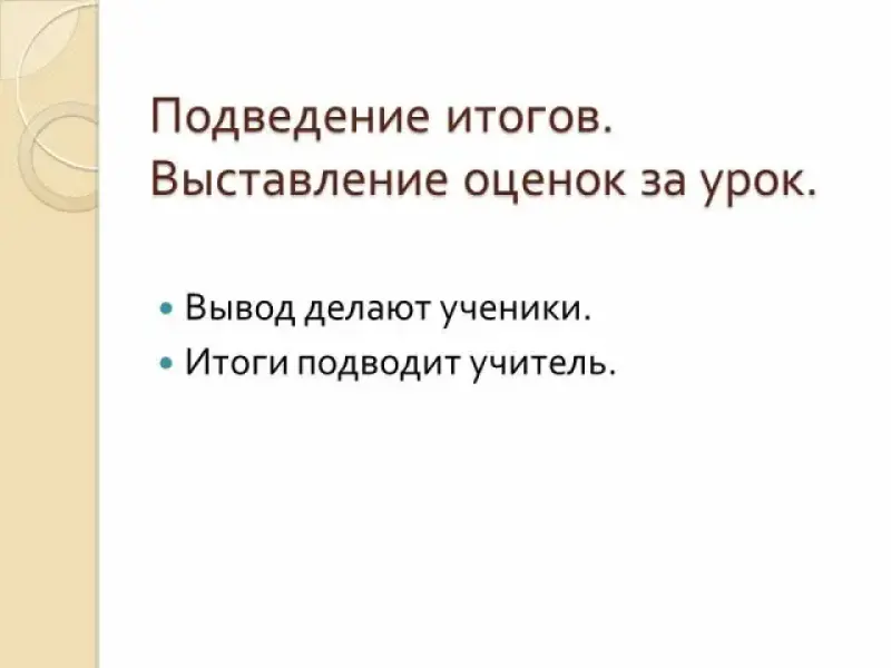 3. Учитель: Подведение итогов. Выставление оценок. (Слайд 30)