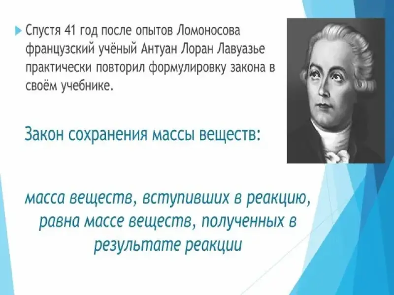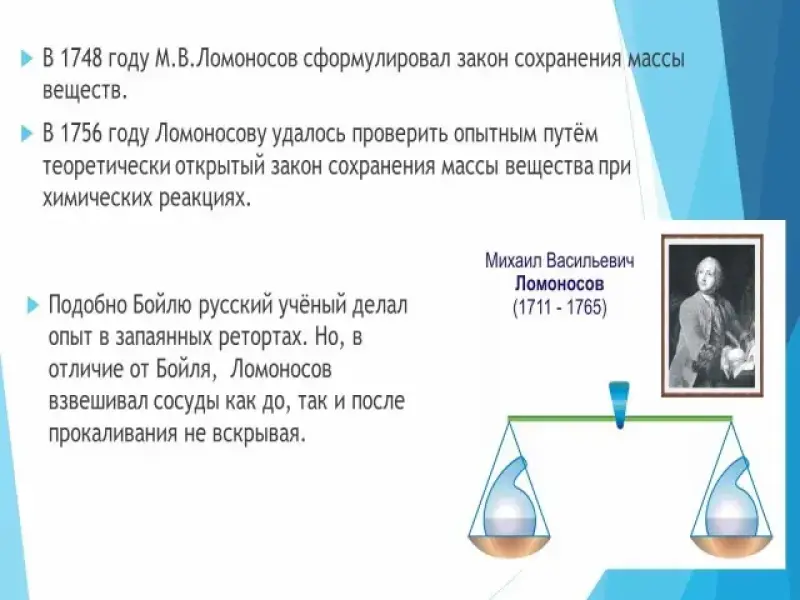 - Познакомить с историей открытия закона сохранения массы веществ, с ролью М.В.Ломоносова и А.Лавуазье в открытии этого закона.