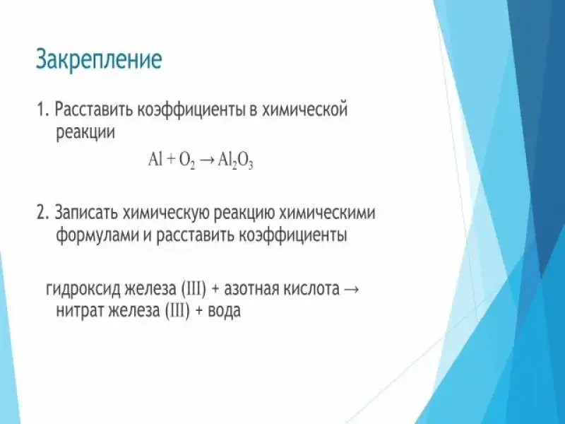- Научить расставлять коэффициенты в уравнениях реакций.